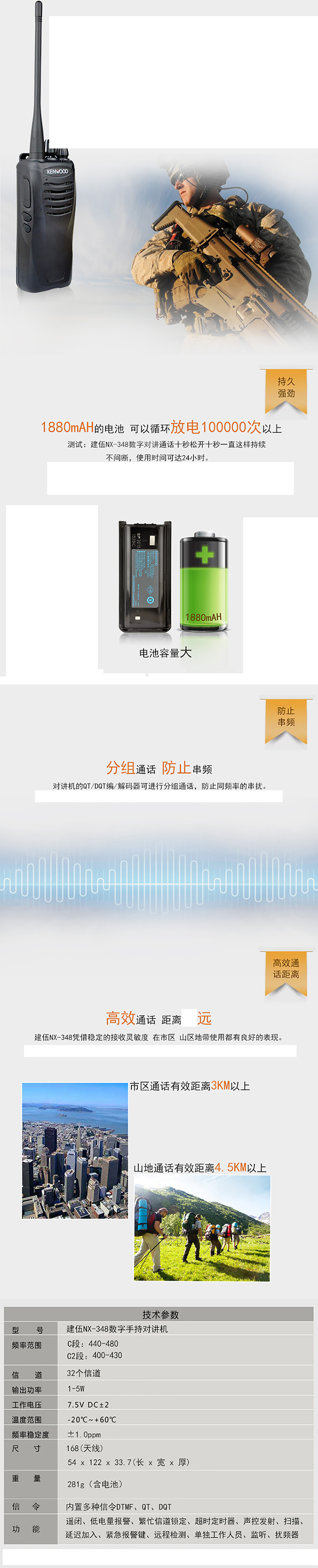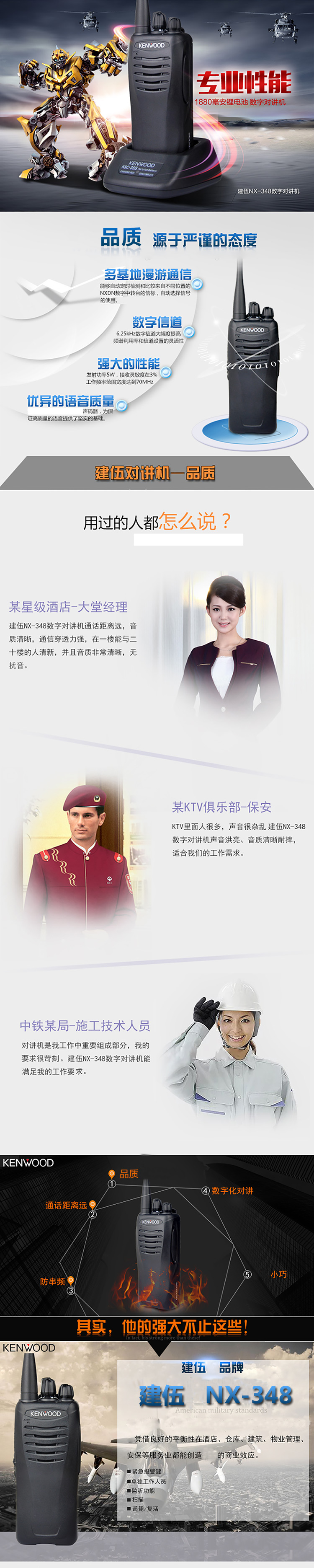 建伍(KENWOOD) NX-348 商業商用民用專業數字對講機大功率穿透400-470MHZ