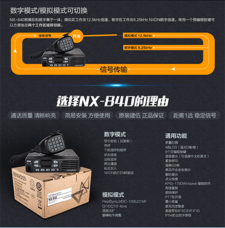 建伍(KENWOOD)NX-340-C6數(shù)字對(duì)講機(jī) 數(shù)模雙用商用對(duì)講機(jī)350M