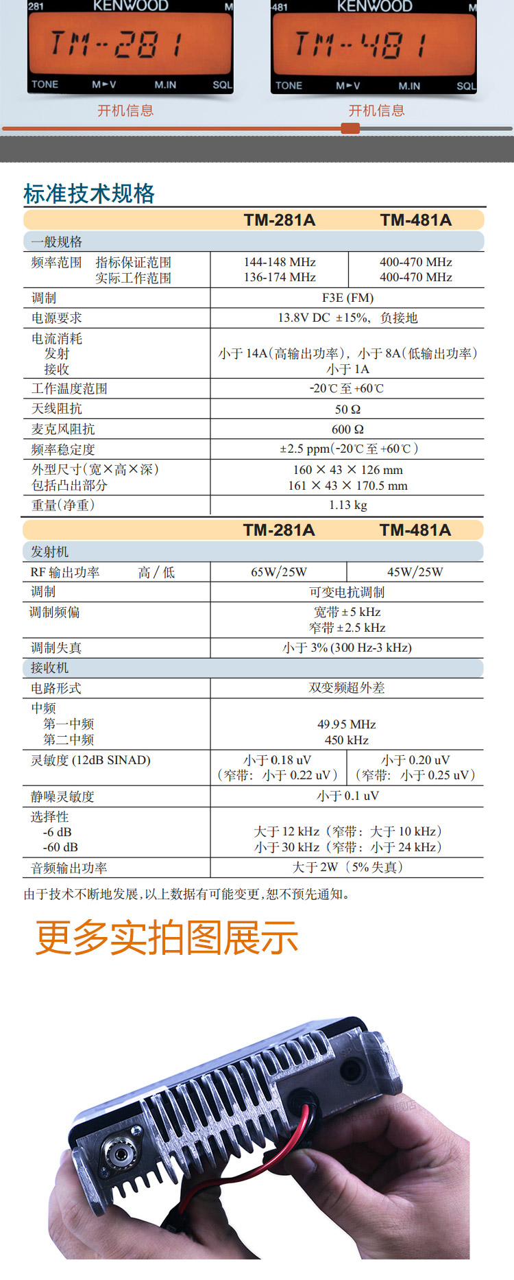建伍(KENWOOD)TM-481A車載對講機 車載電臺大功率專業電臺